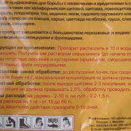 Un traitement rapide empêchera la gale, la pourriture et la maniose de se développer sur les arbres. De plus, l'insectofongicide détruira les pucerons, les vers des feuilles, les cochenilles, les tiques, les têtes de cuivre, les mites, les coléoptères et les mites.