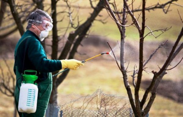 Souvent, les plantes sont traitées avec un fongicide au début du printemps, alors que les bourgeons n'ont pas encore fleuri. Vous devez attendre la fin du gel et une température non inférieure à +4 ° C. Il est important d'effectuer le traitement avant le début du mouvement des jus, l'effet du médicament sera alors plus efficace.De plus, durant cette période, il est plus facile de détruire les insectes qui n'ont pas encore quitté l'hivernage. Avant la pulvérisation, le matériau de revêtement doit être placé sur le sol afin que la substance toxique ne pénètre pas dans le sol.
