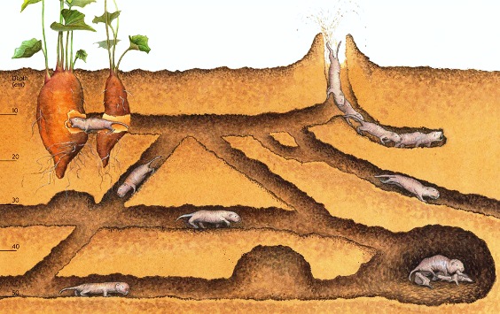 Les taupes pénètrent très rapidement dans leurs tunnels, sur la manière dont elles, ne souhaitant aucun mal à personne, abîment accidentellement les racines des plantes. Ils s'installent généralement en petits groupes ou en familles, donc si une taupinière apparaît dans le chalet d'été, après une semaine, il peut ne rester plus rien du jardin. Après avoir violé les racines des cultures fruitières, les taupes peuvent priver le jardin de la majeure partie de la récolte et l'apparence du site après leur apparition changera complètement. Ils sont également hostiles les uns aux autres, se battant pour les meilleures zones, et l'ensemble de la colonie de taupes peut s'étendre sur plusieurs centaines de mètres.