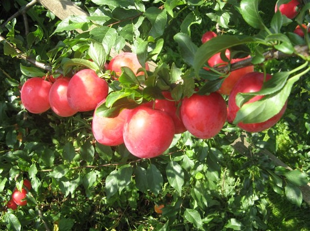 Le prunier à feuilles rouges est l'une des variétés d'une sous-espèce de prunier à gros fruits. Dans les régions méridionales, en particulier sur la côte du Caucase, la prune Pissard est souvent cultivée. Il est incroyablement beau avec ses fleurs roses qui s'assombrissent vers la fin du processus au printemps, ses fruits rouge cerise en été et ses feuilles rouges très vives en automne. Le botaniste Pissard l'a un jour amenée d'Iran en Europe, où elle s'est enracinée dans des régions au climat chaud. Les premières variétés spécialement créées de cette variété étaient "Rosa", "Hollywood", ravies de fruits savoureux et assez gros.