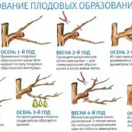 Pour la formation de grands arbres, la forme de la couronne clairsemée est optimale. Il suppose la formation annuelle de 2 à 3 niveaux de 6 à 8 branches squelettiques pendant 5 ans.