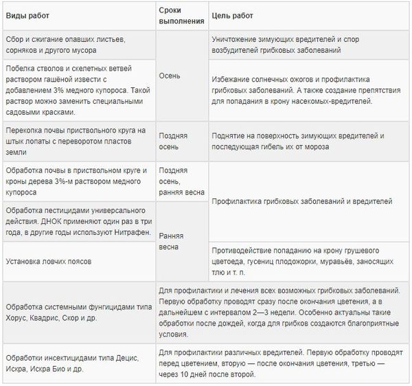 En outre, l'arbre a besoin d'une fertilisation annuelle, qu'ils commencent à faire pour les semis dès 3 ans de culture. Au printemps, la poire est nourrie de nitrate d'ammonium, d'urée ou de nitroammophos. De la matière organique est également ajoutée. Pendant la floraison, une pulvérisation avec une solution d'acide borique est recommandée. Les complexes de potassium sont introduits en été et les superphosphates en automne.