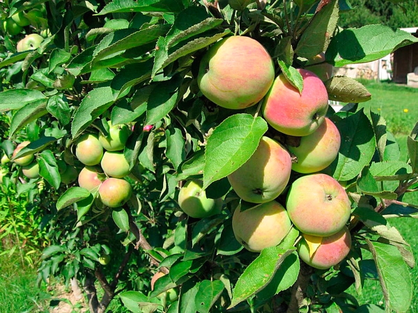 La variété la plus populaire est la devise. La hauteur de l'arbre est de 1,5 à 2,3 m. Les fruits sont jaune clair, avec un côté rouge, pesant entre 140 et 250 g. Les pommes à la pulpe juteuse, sucrées, ont une longue durée de conservation. La pomme est récoltée dans la troisième décade de septembre.