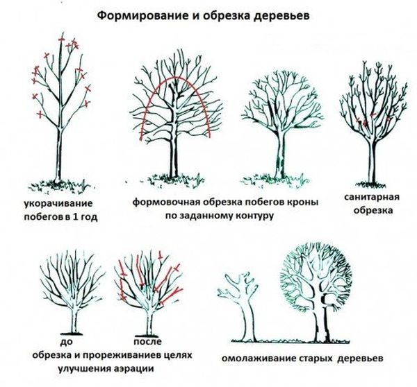 Pour les conditions climatiques de la voie du milieu, la meilleure option est une forme buissonnante, et pour des conditions encore plus sévères et défavorables, la plante est posée avec une strophe. En plus de la fonction formatrice, la taille remplit également les fonctions suivantes : régulatrice, réparatrice, rajeunissante et sanitaire.
