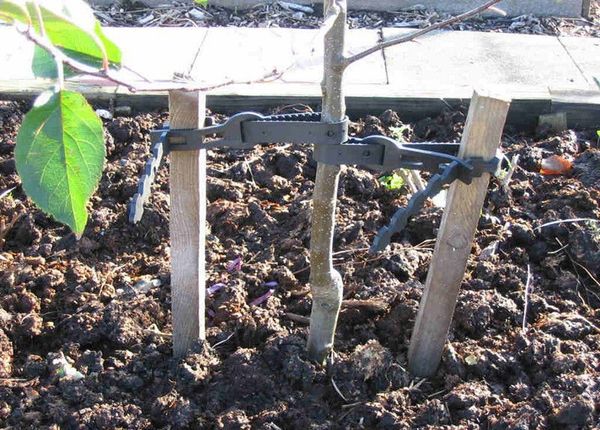 - Compactez le sol, attachez le semis à un support et formez un côté autour du périmètre du cercle du tronc.