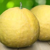 Les fruits verts ont une croûte ridée caractéristique avec des taches jaunâtres. La pulpe n'est pas comestible, mais elle est activement utilisée en cosmétologie.
