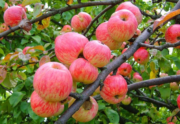 - Melba Rouge. Les fruits en cours de maturation sont de couleur vert clair, mais une rougeur est présente. Cette espèce donne jusqu'à 80 kg de rendement par arbre, mais les fruits ne sont pas trop sucrés.