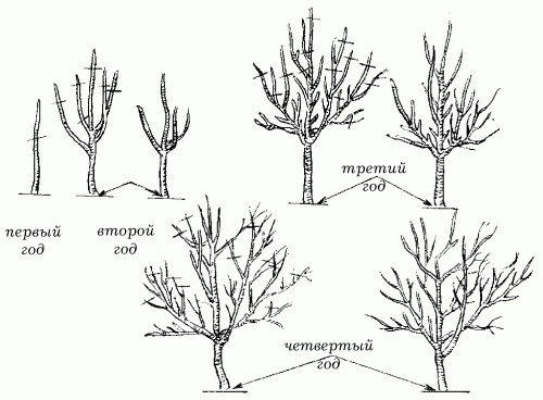 Il n'est pas surprenant que le schéma d'élimination des pousses en excès sur les troncs et les branches squelettiques des jeunes et des vieux arbres lors de la taille printanière des pommiers soit très différent, tout en ayant des racines communes. Les arbres qui n'ont pas encore porté leurs fruits ou qui ont donné une ou deux récoltes sont taillés de manière spéciale et plus souvent que les individus plus matures.