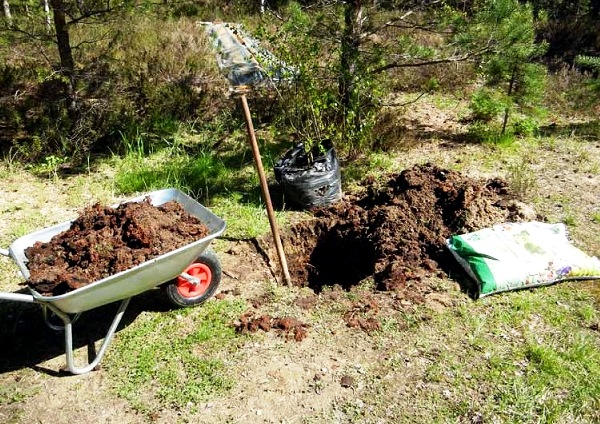 Si la fosse est préparée à l'avance, elle doit être bien tassée et marquée afin que vous puissiez retrouver cet endroit après un certain temps. Si le sol est argileux, faites le trou pas profond (30-40 cm), mais large. Sa largeur peut être de 1 à 1,5 mètre. C'est ainsi que les racines peuvent se sentir à l'aise dans un sol lourd et se développer en largeur sans problème. Essayez de rendre le trou aussi imperméable et respirant que possible. Pour ce faire, vous devez sélectionner autant que possible l'argile de la dépression et ajouter du sable et de l'humus. Certains jardiniers recommandent de mettre du drainage au fond - brique cassée, cailloux, argile expansée, etc. Le résultat de la plantation d'un semis, et donc de tout votre travail, dépendra de la qualité de la préparation de la fosse.