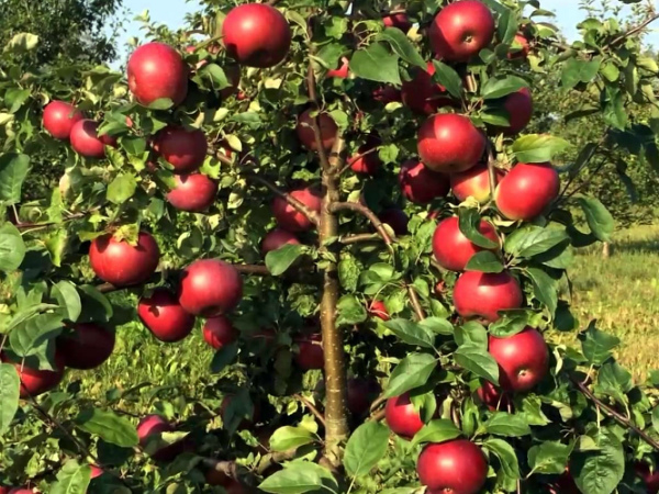 Les pommiers de taille moyenne poussent assez rapidement - à la 8e année de vie dans le jardin, ils atteignent jusqu'à 3 mètres de hauteur. La couronne n'est pas particulièrement dense, de forme ronde, un peu conique et légèrement tombante. Cette forme facilite l'entretien de l'arbre, ainsi que la récolte.