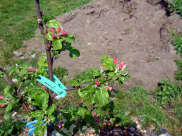 - Les gaules doivent être plantées à une distance suffisante les unes des autres ou des autres types de cultures fruitières. Pour les jeunes pommiers Imrus, il est souhaitable qu'il n'y ait pas d'arbres dans un rayon de 2-3 m.