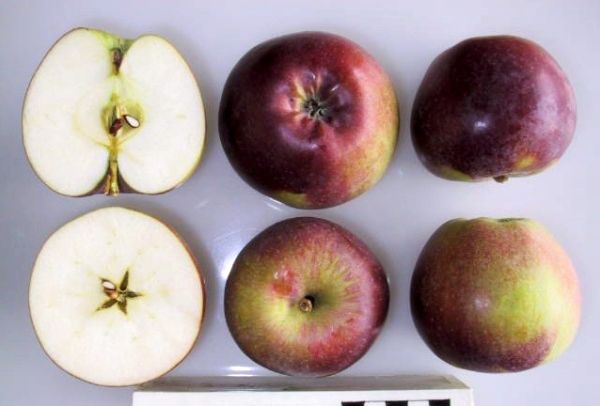 Les pommes se distinguent par la forme correcte : arrondie, légèrement aplatie. Les fruits non mûrs ont une couleur jaune qui vire au violet intense à mesure qu'ils mûrissent. La surface des pommes est recouverte d'une légère couche cireuse.