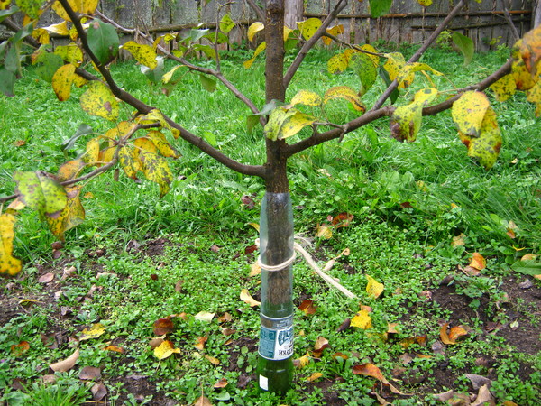 Et si ce ne sont pas des souris, mais des lièvres qui se sont frayé un chemin jusqu'à vos pommiers, essayez de jouer sur leur peur : vous pouvez accrocher des sacs plastiques bruissants ou des canettes vides sur des branches d'arbres, qui feront des bruits aigus au moindre souffle de vent. Connaissant le zapolosnost de cette bête, il s'enfuira au moindre soupçon d'un grincement aigu ou même d'un simple bruissement.