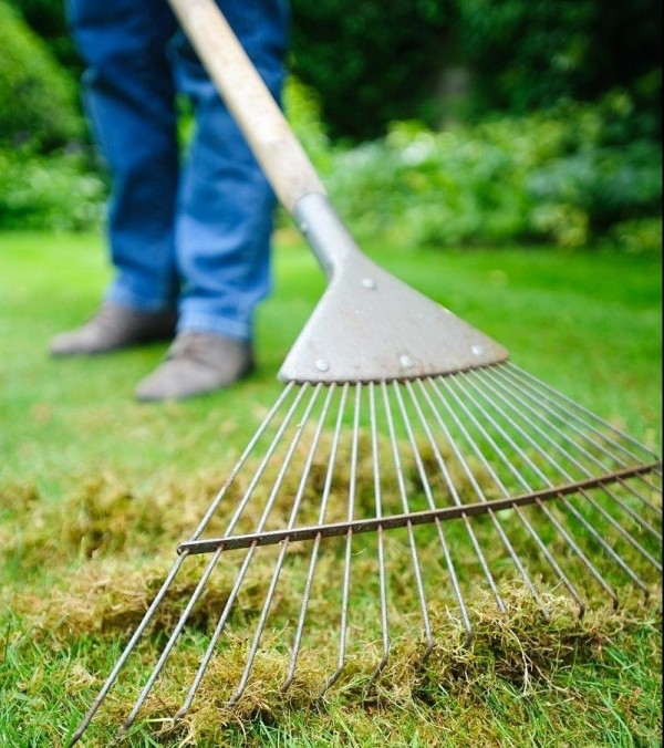 - « Peigner » la pelouse avant de la tondre ;