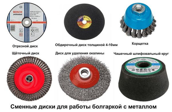 Selon le type de travail, des disques de différents diamètres sont installés sur les meuleuses d'angle :