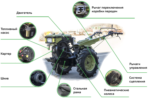 L'utilisation d'un tracteur à conducteur marchant diesel ou à essence vous permet d'augmenter de 30 à 40% l'efficacité de diverses opérations agricoles. Lorsqu'elles sont utilisées correctement, les unités puissantes offrent d'excellentes fonctionnalités et des performances élevées.