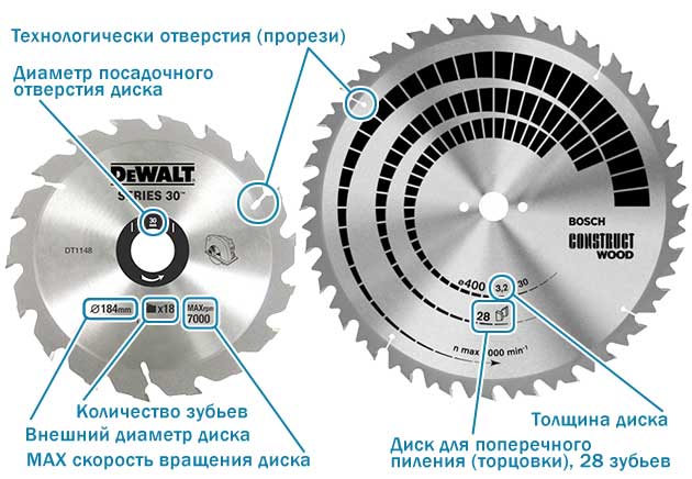 - lame de scie (diamètres intérieur et alésage) - 216 et 30 mm;