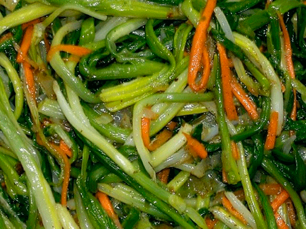 Considérez maintenant la procédure de préparation des feuilles d'ail sauvage marinées: