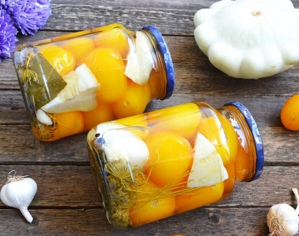 Pour la conservation, vous pouvez utiliser à la fois de gros fruits, préalablement pelés, entiers ou coupés en morceaux, et de petits fruits - non pelés et entiers. Si l'hôtesse envisage de faire une salade assortie exquise et savoureuse, nous vous conseillons de choisir des petits fruits au jardin ou au marché afin que le produit à la sortie conserve le goût particulier du fruit. Avant de mariner, les légumes doivent être blanchis pour les ramollir : placez-les dans de l'eau bouillante pendant 4 minutes, puis dans un récipient d'eau froide. Pour que les fruits en conserve ne deviennent pas flasques et ne perdent pas leur goût, après le sertissage, les conserves ne doivent pas être isolées, mais fortement refroidies.