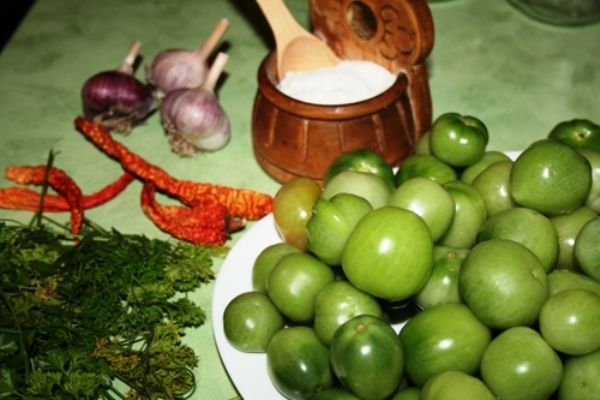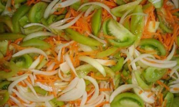 Le salage des tomates vertes se fait souvent avec des oignons.Cette recette est très bénéfique et est très efficace pour prévenir les rhumes. L'algorithme des actions est le suivant :