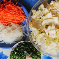 Tout d'abord, le chou doit être coupé en fines tranches. Pour ce faire, vous pouvez utiliser un broyeur spécial ou un couteau ordinaire. À la suite de ces manipulations simples, une sorte de "paille" devrait se révéler. Les carottes doivent être lavées, pelées et râpées sur une râpe grossière. Eplucher l'ail et passer au pressoir. Tous les composants préparés doivent être combinés dans un pot de trois litres, soigneusement scellé.