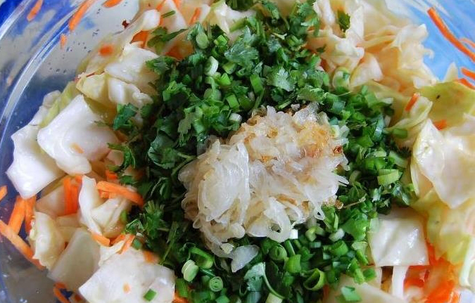 Ce n'est pas vraiment un chou coréen traditionnel. Grâce à l'utilisation de plusieurs ingrédients, ce plat peut à juste titre être considéré comme une salade d'hiver à part entière.
