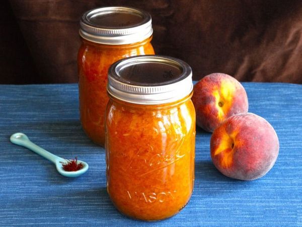 Les pêches doivent être arrosées d'eau bouillante, pelées et coupées en tranches. Trancher les tranches d'orange, frotter le zeste d'agrumes. Remplissez la masse de fruits avec de l'eau et faites-la cuire pendant une demi-heure jusqu'à ce que les pêches ramollissent. Pendant ce temps, nous chauffons le sucre dans une poêle et l'ajoutons à la masse bouillie. Cuire en remuant de temps en temps jusqu'à ce que le sucre se dissolve, puis ajouter les noix concassées et faire bouillir un peu plus. Nous fermons de manière traditionnelle.