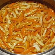 - 350 g de zeste finement haché sont trempés pendant 10 minutes.