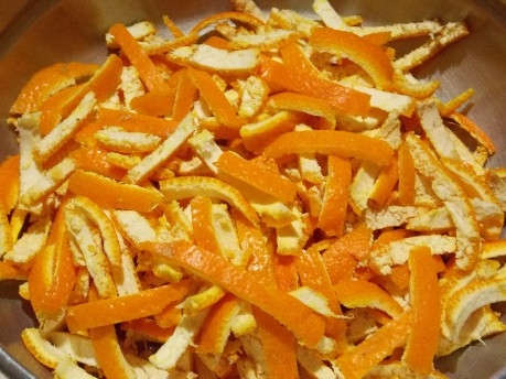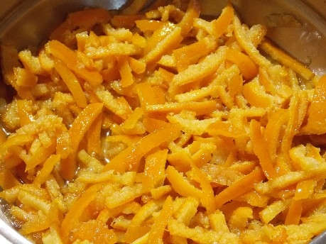 - Le zeste d'orange finement râpé est ajouté.