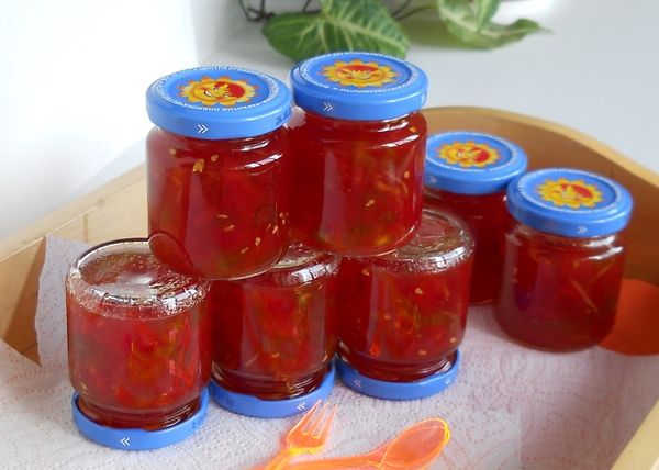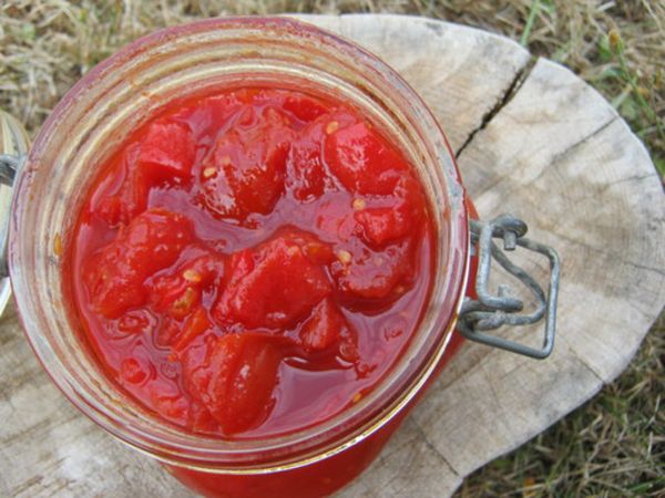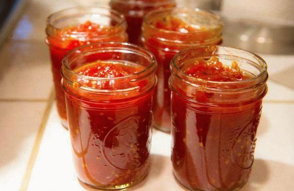 - Verser la gourmandise de tomate dans des bocaux stérilisés et secs, fermer.