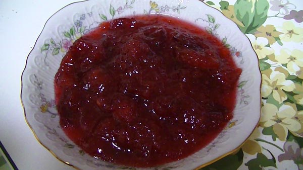 L'essentiel est de garder le feu lent, d'éviter de remuer brutalement avec une cuillère, il est préférable de secouer la vaisselle de temps en temps. La confiture entièrement préparée dans des récipients est disposée au froid, recouverte de couvercles ou même de parchemin, conservée au froid.
