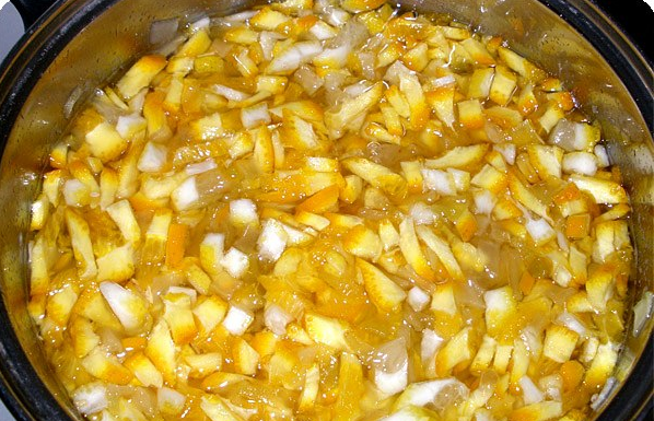 - A la dernière cuisson, ajoutez les agrumes finement hachés, portez à ébullition et maintenez le feu environ 20 minutes.