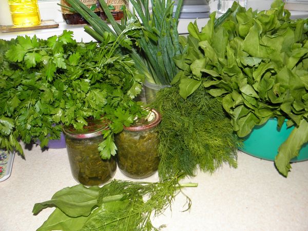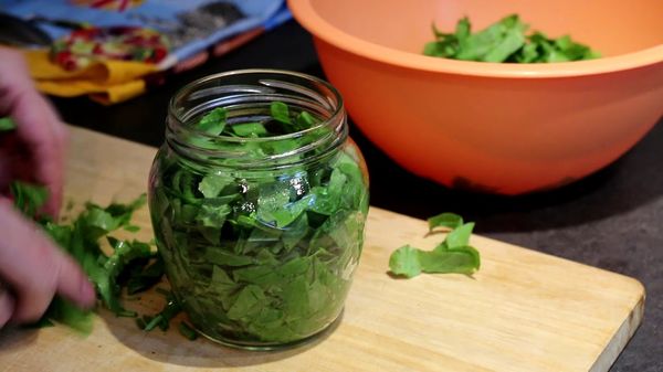 Une autre façon intéressante de conserver, qui constitue une excellente préparation pour faire des soupes en purée ou pour garnir des tartes. Avant de procéder à la mise en conserve de l'oseille de cette manière, les feuilles doivent non seulement être lavées et séchées, mais également passées dans un hachoir à viande.