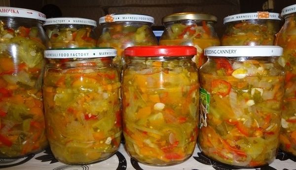 - En fin de cuisson, ajoutez les légumes verts, mélangez bien, mettez dans des bocaux stérilisés, conservez, retirez pour l'hiver.