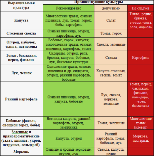 En observant la rotation des cultures, vous devez suivre deux règles simples. Tout d'abord, vous ne devez pas faire pousser des cultures de la même famille au même endroit. Par exemple, alternez ail et oignons, pommes de terre et tomates, carottes et aneth, concombres et courgettes. Heureusement, il est maintenant facile de savoir à quelle famille appartiennent les cultures, il vous suffit d'entrer le nom dans n'importe quel moteur de recherche. La règle découle d'un fait immuable - avec la culture à long terme d'une famille, ils commencent à accumuler des toxines, à attirer les insectes nuisibles et les microbes.
