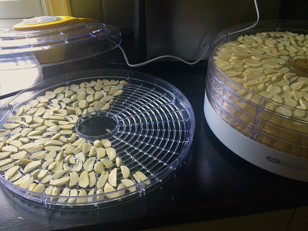 Coupez les gousses épluchées en fines lamelles pour une poudre d'ail qui se conserve bien dans le bocal. Ensuite, séchez-les au four pendant 10-15 minutes et broyez-les en poudre. Le goût et l'odeur resteront, et il prendra très peu d'espace de stockage.
