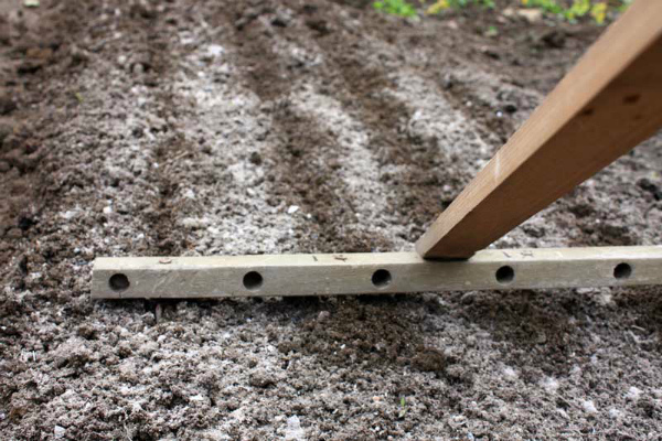 - Le sol peut être nourri avec une solution de levure, après quoi les sillons peuvent être divisés en laissant 25 centimètres entre eux. Dans ces sillons, des denticules sont plantés à intervalles de 10 centimètres, puis recouverts de terre.