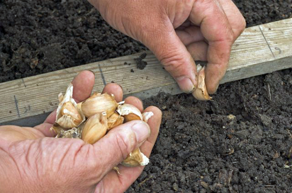 Vous devez creuser le sol pour planter les dents jusqu'à 8 cm de profondeur. La distance entre chaque clou de girofle semé pour l'hiver doit être de 8 à 10 cm.Pour que la culture et la récolte soient aussi pratiques que possible, et que chaque plante ait la bonne quantité de nutriments, la culture doit être plantée en damier, tout comme il est recommandé de planter des fraises.
