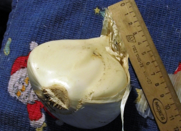 Surveillez attentivement la plante, car il n'est pas recommandé de surexposer le Rocambol dans le sol - le risque d'infection par des spores fongiques augmente. De plus, les écailles des bulbes s'amincissent et éclatent, de sorte que les clous de girofle se désintègrent et commencent rapidement à se détériorer.
