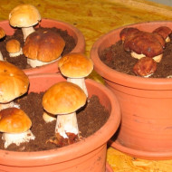 En utilisant des mycéliums prêts à l'emploi, la récolte des boîtes placées sur le rebord de la fenêtre ou ailleurs peut être récoltée dans les 7 à 10 jours. Jusqu'à 5 kg de champignons sont obtenus à partir de la boîte. Il convient également de mentionner l'absence dans la pièce d'une odeur spécifique et de composants toxiques dans la composition. Le seul inconvénient est que les mycéliums prêts à l'emploi ne peuvent pas être achetés au marché, à la foire du jardinage ou dans un magasin spécialisé.