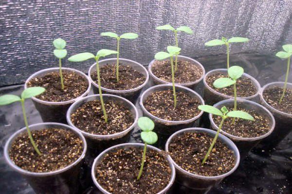 Une semaine plus tard, les premières pousses apparaîtront, qui doivent être éclaircies, ne laissant que la pousse la plus forte dans chaque tasse. Les plantules doivent être nourries deux fois :