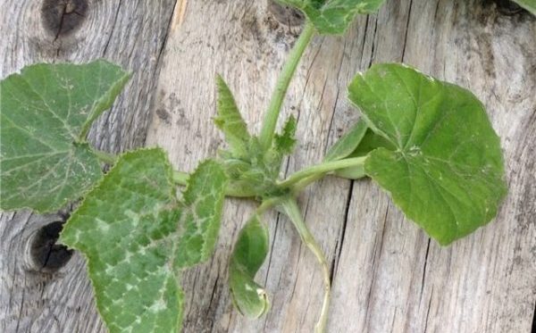 En termes de danger pour la famille des citrouilles, la mosaïque blanche occupe une position de leader. Les feuilles de courgettes infectées se tachent de blanc et de jaune en mosaïque. Le plus souvent, avec le temps, ils virent au blanc, seules les nervures de la feuille restent vertes. La structure de la feuille ne change pas - elle ne se dessèche pas, ne se déforme pas, ne s'enroule pas dans un tube.