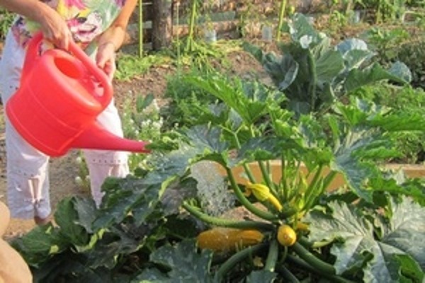 - avant la floraison, les courgettes doivent être arrosées à raison de 8 à 10 l / m. carré lits, lors de la fructification, la consommation d'eau est de 10-12 l / m. carré si l'arrosage est effectué au moins 2 fois par semaine, et 15-20 litres, si l'arrosage est effectué 1 fois/semaine.