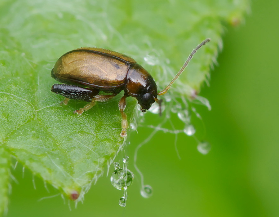 Le lurker du chou-tige est un ravageur du chou ordinaire et assez commun dans nos jardins. C'est un petit coléoptère avec une tache claire sur le scutellum. Ses larves sont assez grosses, ce qui les rend faciles à détecter sur les plantes. On les trouve dans les nervures des feuilles, ainsi que sur les tiges et le collet. Les larves écloses ressemblent à des asticots et peuvent détruire complètement la récolte de choux et d'autres plantes crucifères en un mois.