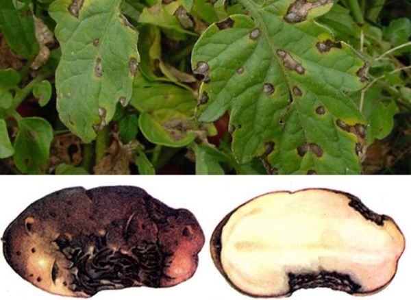 Les champignons pathogènes infectent toute la récolte de pommes de terre, menaçant de détruire la majeure partie de la récolte. Les spores se multiplient rapidement et en peu de temps peuvent s'installer dans toute la zone. De plus, ils réduisent l'immunité de la plante, la rendant moins résistante aux autres infections. Vous pouvez combattre la maladie à l'aide de fongicides et, à des fins de prévention, empêcher l'engorgement du sol.