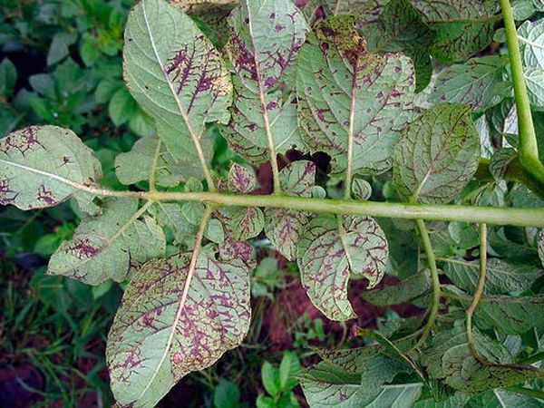 La maladie est causée par différentes souches de virus et, par conséquent, les symptômes peuvent différer légèrement.Cependant, il existe des signes de base par lesquels une mosaïque rayée peut être diagnostiquée. Les pousses de pomme de terre perdent leur souplesse et deviennent cassantes. La partie aérienne de la plante est couverte de taches de différentes tailles. Les nervures des plaques foliaires sont de couleur brun foncé ou violet foncé. Le virus se multiplie très rapidement et le buisson malade doit donc être détruit. La maladie peut être évitée grâce à un traitement préventif.
