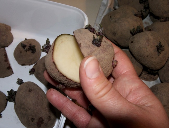 Étant donné que nos gens sont très débrouillards, en l'absence de la quantité nécessaire de matériel pour la plantation - nous parlons de tubercules, pas de graines - les jardiniers expérimentés utilisent parfois des pommes de terre coupées. Dans les cinq jours, ils doivent être conservés à température ambiante, pendant lesquels le site de coupe est séché, ce qui empêche la pourriture des racines plantées et réduit le risque de maladie. Le sixième jour, les pièces sont déposées en couches minces dans des boîtes préparées, recouvertes de sable ou de terre.