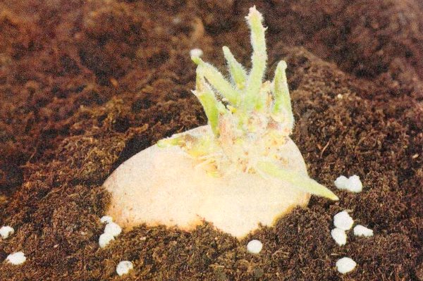Pour augmenter les rendements et accélérer la levée des plantules, les jardiniers expérimentés conseillent la vernalisation des pommes de terre. À cette fin, les parties des tubercules qui doivent être plantées sont exposées à la lumière diffuse à une température de 15 à 20 degrés (température ambiante). Cela permettra aux yeux de germer plus rapidement. Les germes ainsi obtenus sont appelés germes légers. Ils doivent être courts, grossiers, de couleur verte, avec des bourgeons à feuilles. Parfois même des racines apparaissent. Effectuer de telles manipulations avec des semences réduira de près de moitié le délai entre la plantation et la levée.