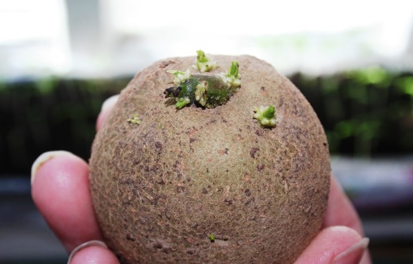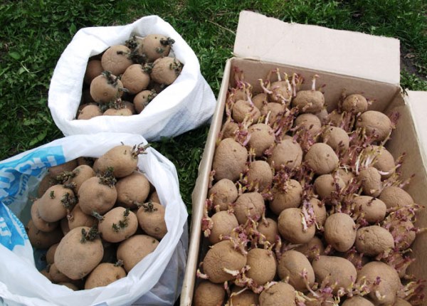 Et si les pommes de terre avaient déjà germé bien avant la plantation ? Les pousses longues doivent être cassées car elles peuvent se dessécher ou se casser pendant le transfert et la plantation. S'il y a des pousses courtes sans taches et des sommets noircis, ils doivent être laissés, mais humidifiés avec de l'eau. À la lumière, les pommes de terre pousseront de nouvelles pousses de haute qualité.