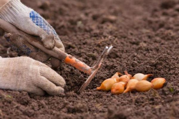 La plantation de printemps nécessite de réaliser des rainures de 3-4 cm de profondeur avec un interligne de 20-30 cm.Les bulbes plantés sont saupoudrés de terre, abondamment humidifiés et paillés de paille, de foin ou de feuilles.